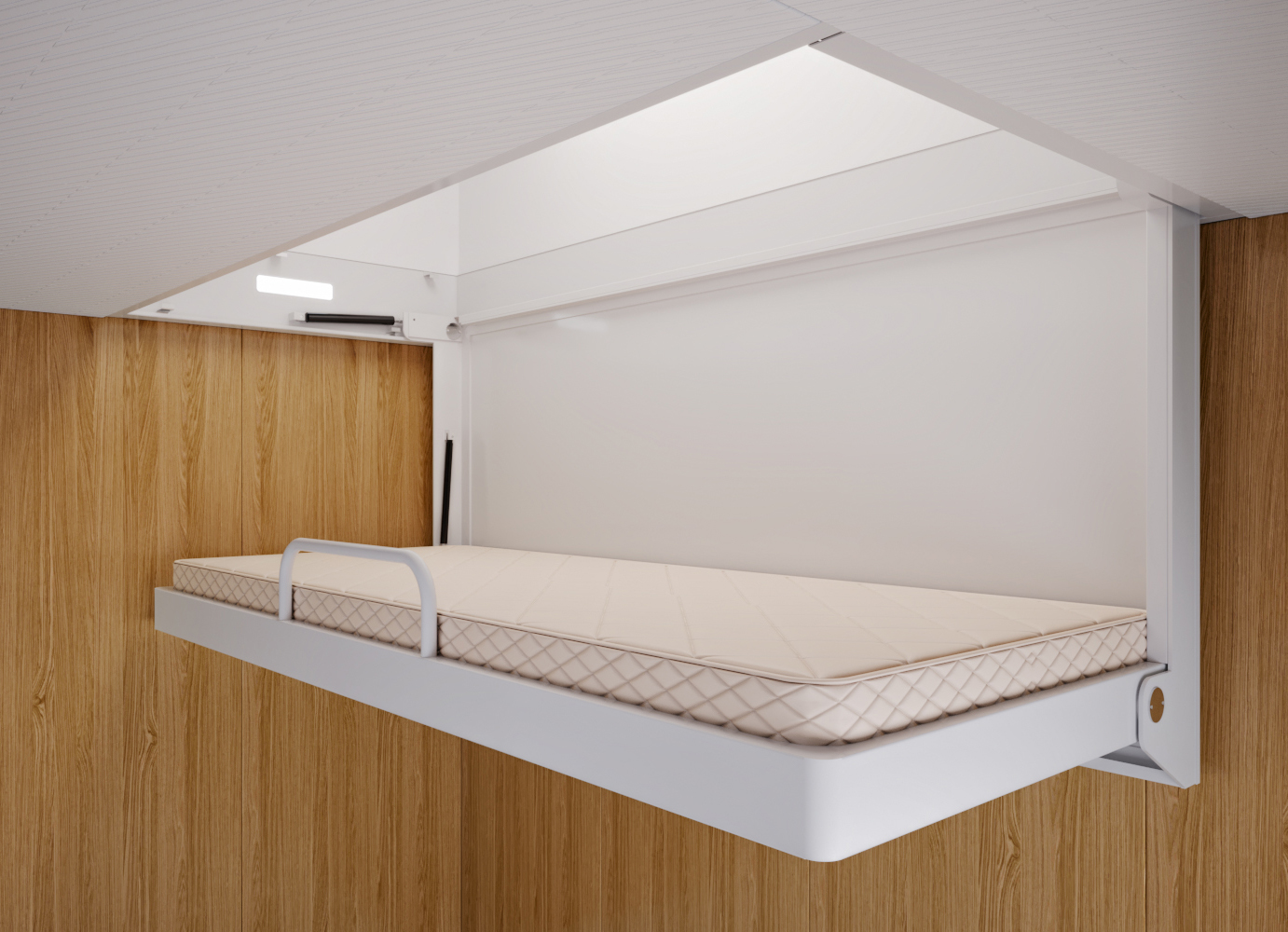 鋁合金翻板床、沙發(fā)床和吸頂式翻板床:是我們公司研發(fā)的專利產(chǎn)品,主要用于豪華郵輪、客滾船,翻板床安裝在起居艙室艙壁上,可以折疊,沙發(fā)床折疊后可以替代沙發(fā)使用,開啟可以當床使用,吸頂式翻板床可以收進天花板,開啟與閉合具有助力緩沖功能,充分利用和節(jié)省了船舶起居空間,安全、方便、美觀。每個系列產(chǎn)品都能滿足靜載荷、動載荷及疲勞試驗等內(nèi)控標準,使用壽命可達20年以上,因產(chǎn)品品質(zhì)高端、價格合理,產(chǎn)品一經(jīng)推出,迅速占領(lǐng)國內(nèi)市場。