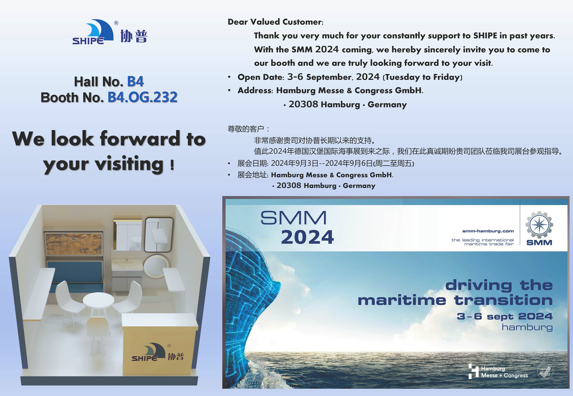Welcome to attend 31st SMM Hamburg – 歡迎參加2024年第31屆德國(guó)漢堡海事展